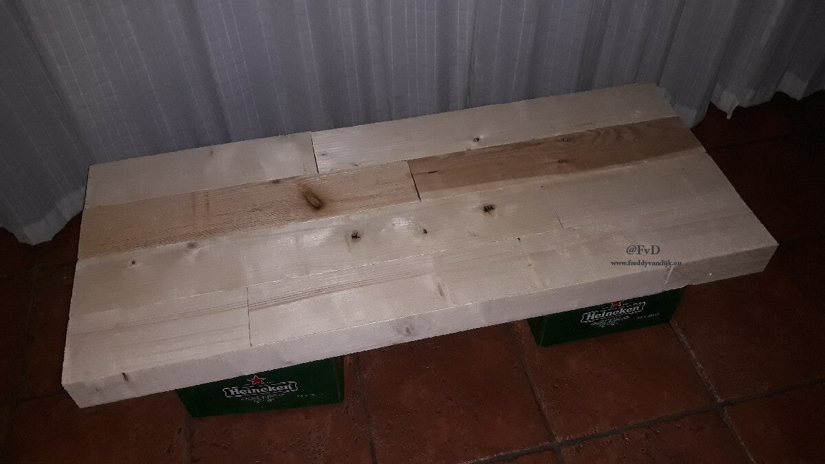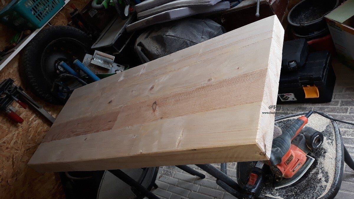 Vandaag het blad geschuurd en nu voor de eerste keer in de lak zetten. De poten zijn nu klaar en zitten onder het blad gemonteerd.